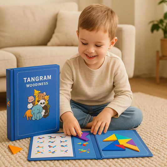 Portable Montessori Wooden Magnetic Tangram Puzzle Book Learning Toy