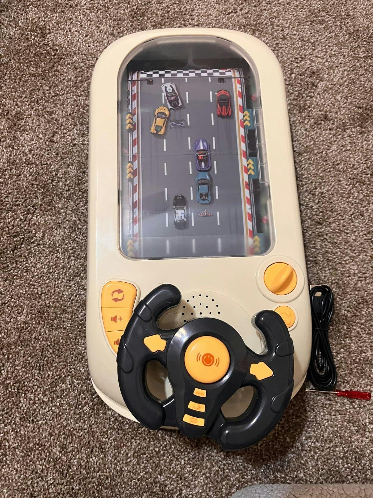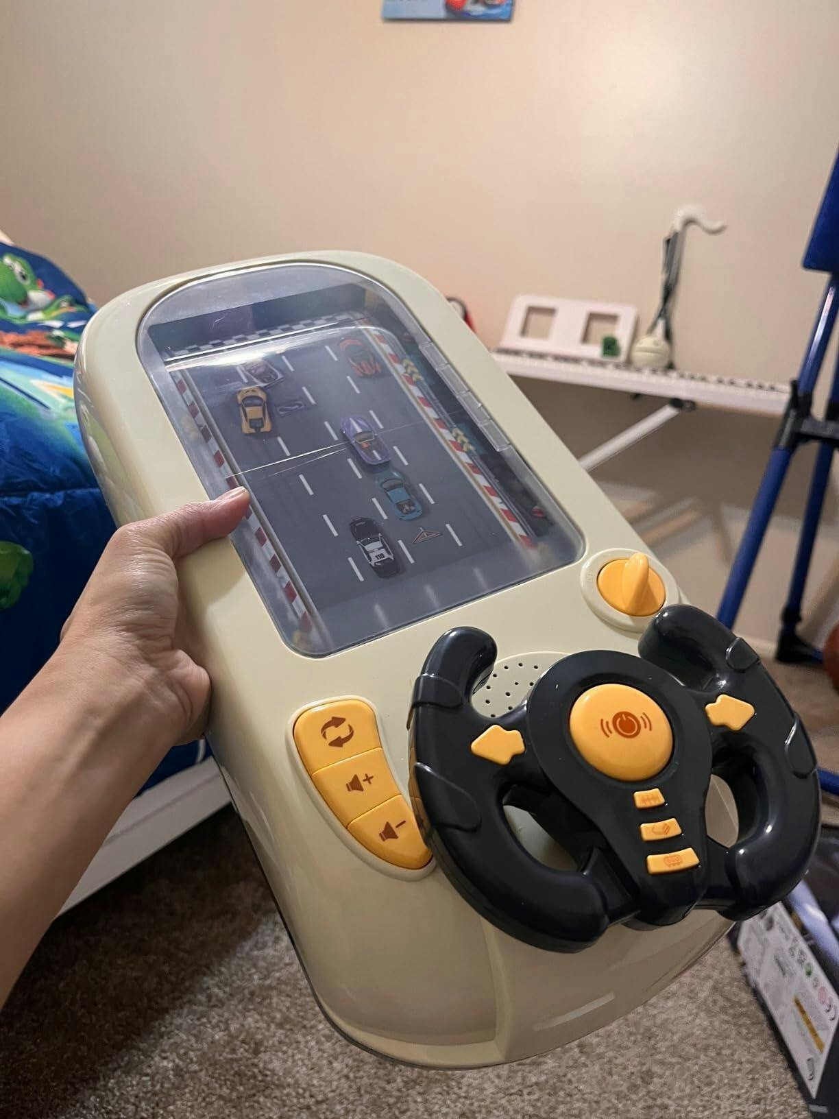 My son can’t stop playing with this racing game box, it keeps him entertained for hours and helps with his hand-eye coordination. The design is sturdy and perfect for little hands.