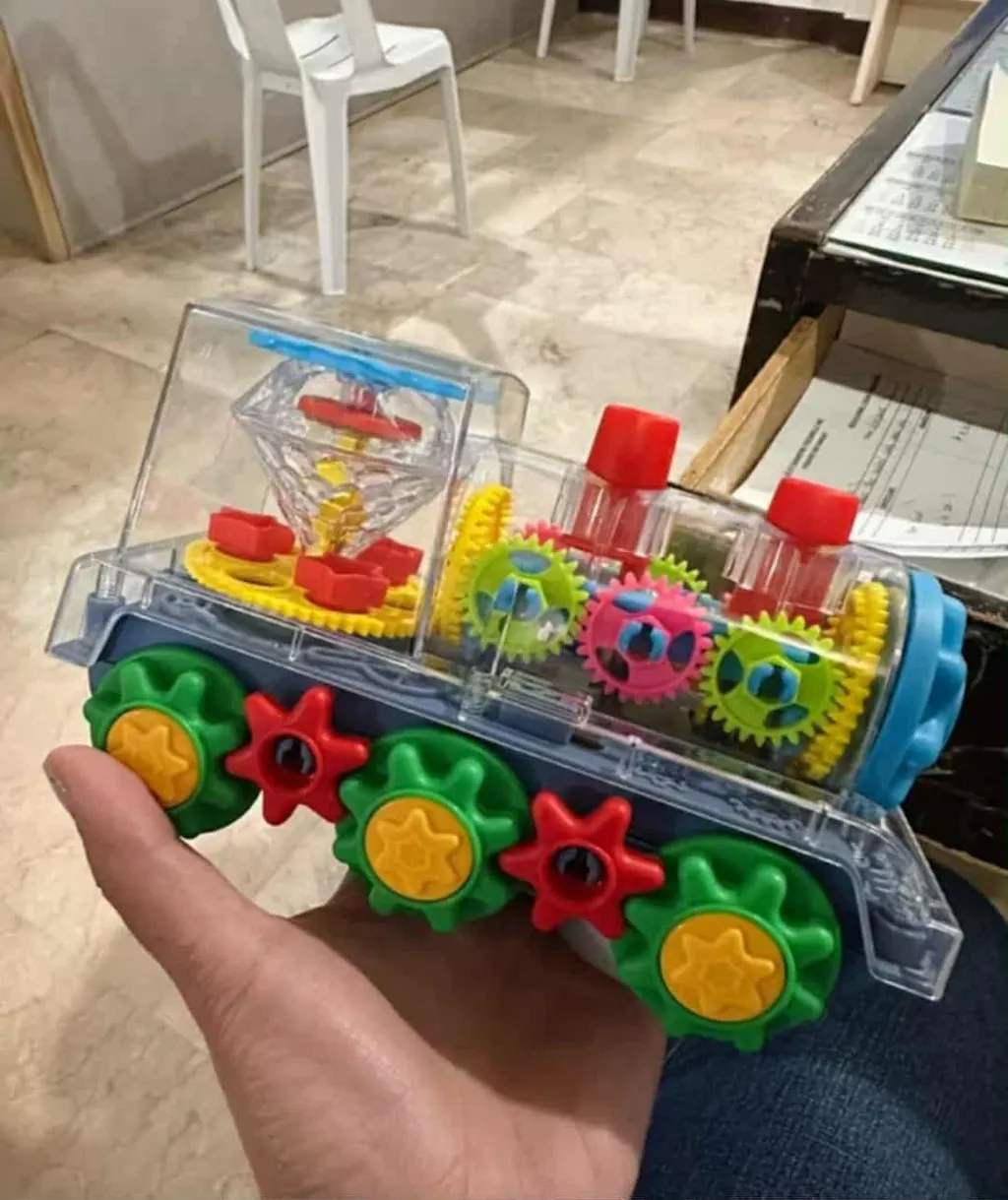 The gears inside spin while the lights flash which fascinates my little one.It feels educational and fun at the same time.