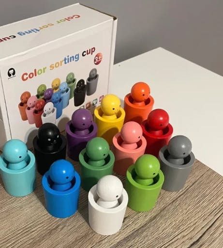 "My toddler absolutely loves this toy! It’s amazing how quickly she started recognizing colors and sorting the cups correctly. The wooden quality feels great and it keeps her engaged for hours!"