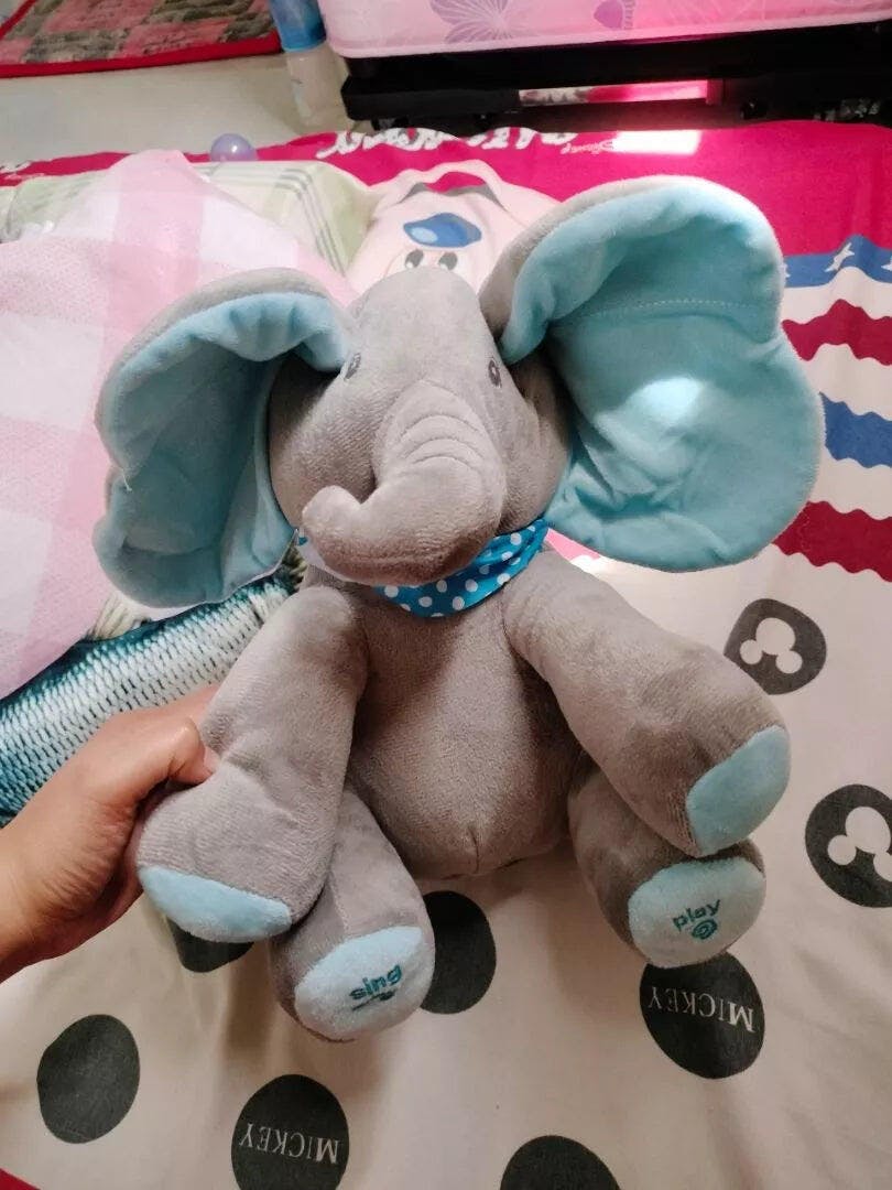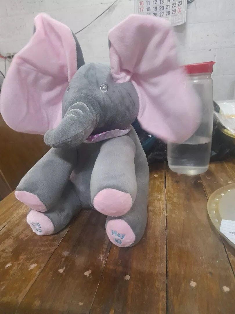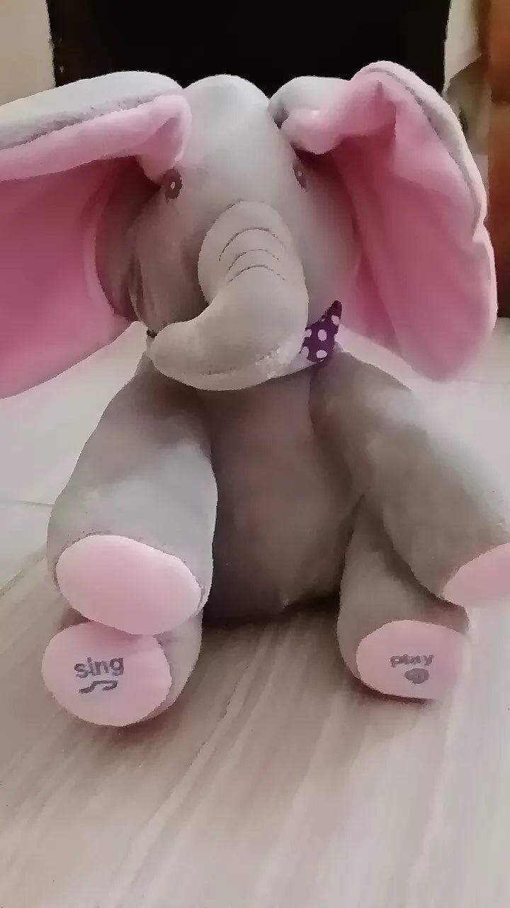 - 🎶 Flapping Ears & Gentle Voice: The elephant covers and uncovers its face while speaking playful phrases.