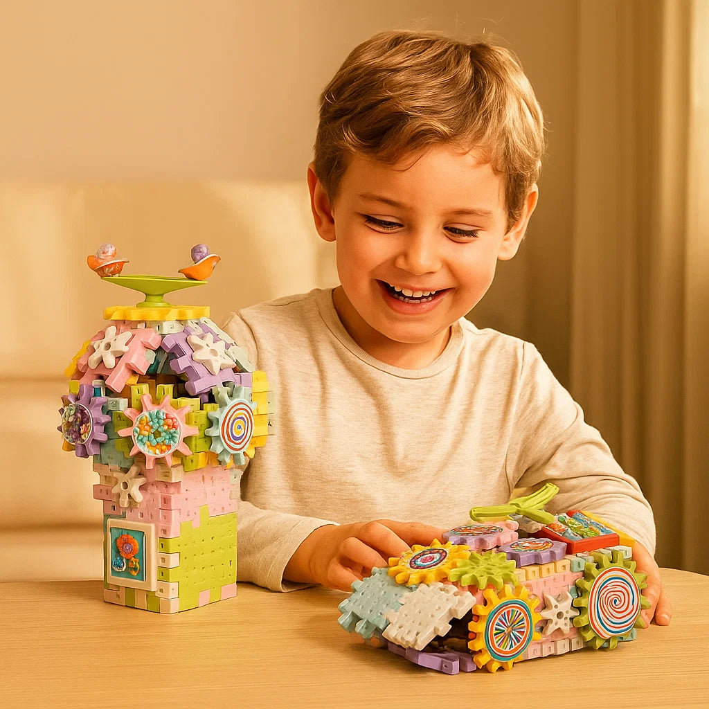 - ⚙️ Interactive Gears: Turn the gears and watch the building blocks come to life.