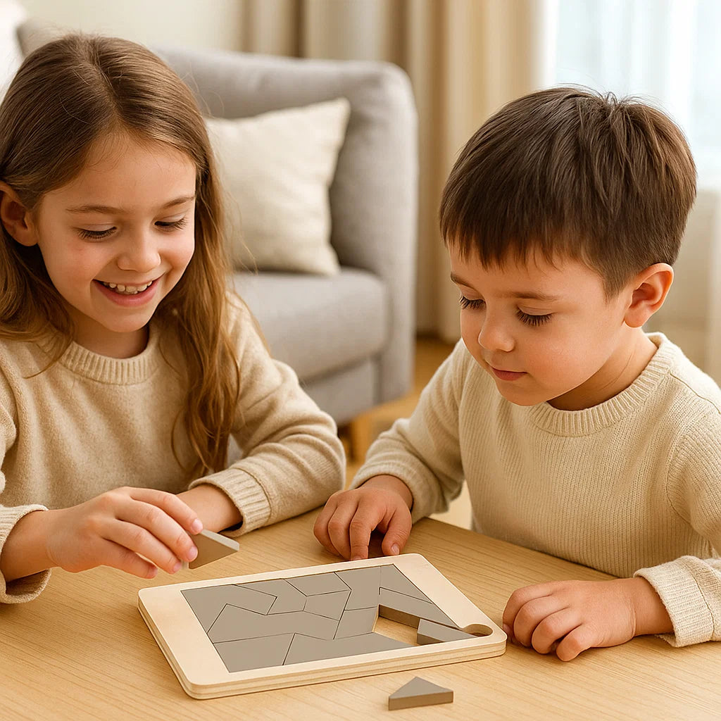 The Tangram Puzzle combines playful entertainment with the development of cognitive skills. Kids improve their problem-solving abilities while adults sharpen their spatial reasoning. Each new shape becomes a small mental challenge.